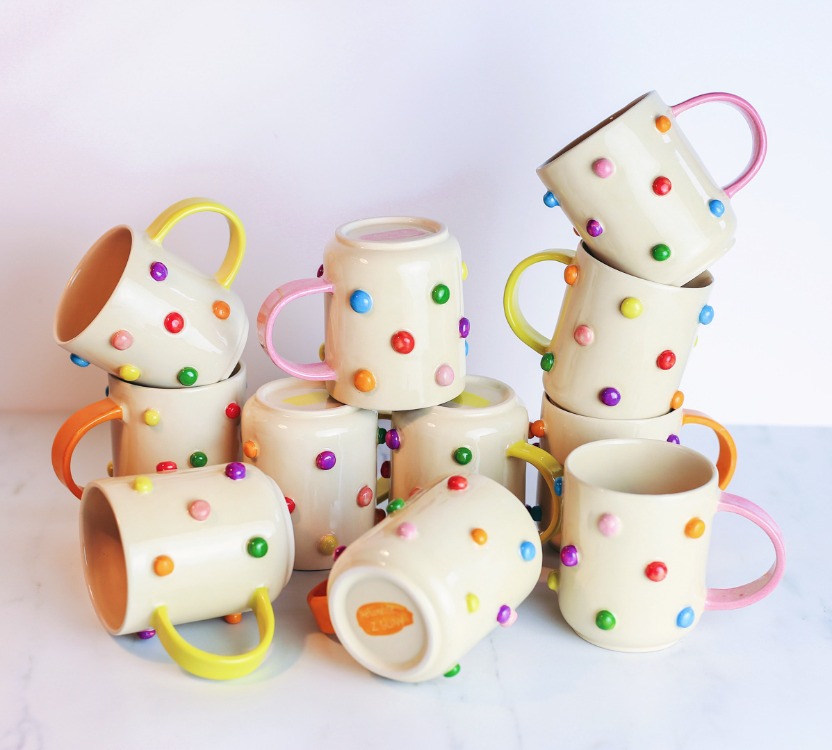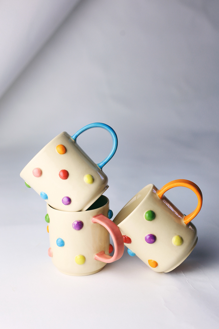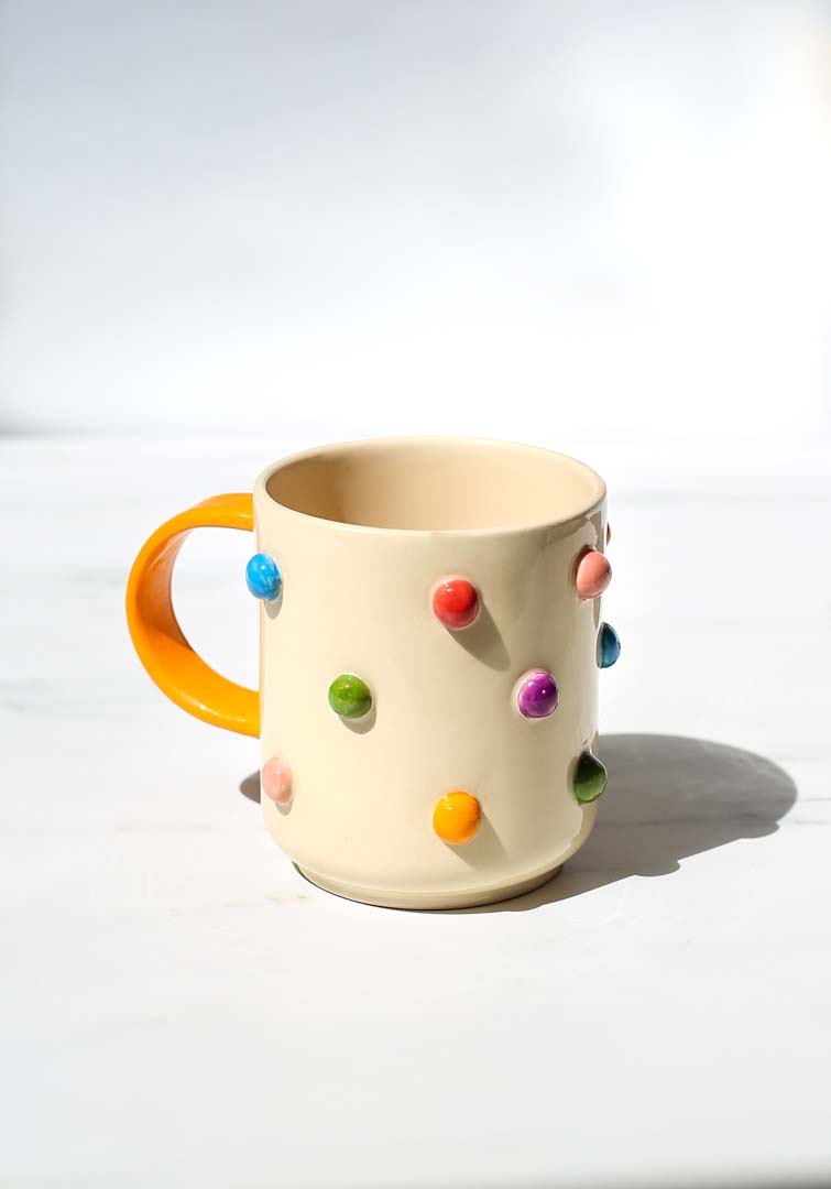 Kubek w odstające kolorowe bąbelki.